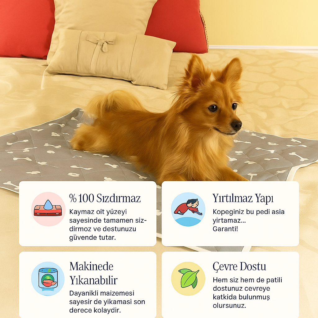 Sızdırmaz, yırtılmaz, makinede yıkanabilir ve çevre dostu yapısıyla PELIVERA™ Köpek Çiş Pedi; hem evinizi temiz tutar hem de dostunuza maksimum konfor sağlar. Tüm yüzeylerde kaymadan sabit durur, kötü kokuyu hapseder ve uzun ömürlü kullanım sunar. Eğitim sürecini kolaylaştıran yapısıyla her evcil hayvan sahibi için ideal bir çözümdür.